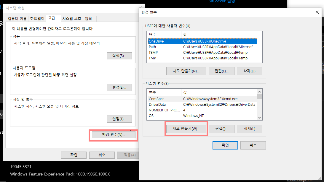 - ๊ณ ๊ธ > ํ๊ฒฝ ๋ณ์ > ์์คํ ๋ณ์ > ์๋ก ๋ง๋ค๊ธฐ
