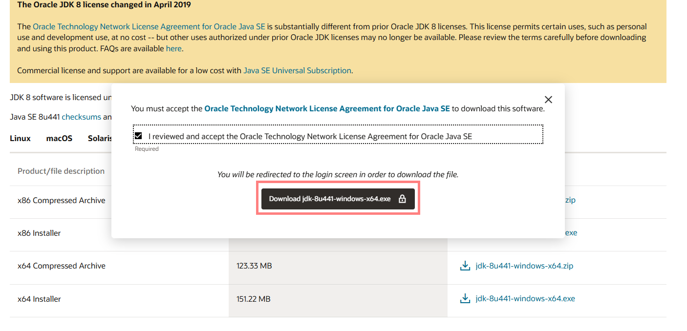 - jdk ๋ค์ด๋ก๋๋ฅผ ์ํด ์ค๋ผํด ํํ์ด์ง ์ ์